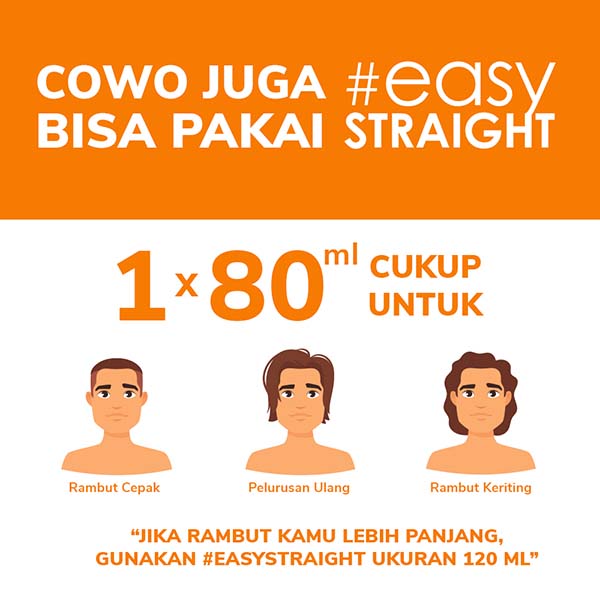 Hair Energy #EasyStraight Medium 120 mL (for Moderately Damaged Curly Hair) cocok digunakan untuk kamu yang memiliki rambut keriting, kering, serta agak rusak, yang disebabkan oleh seringnya penggunaan catok, atau pernah melakukan pelurusan dengan jarak waktu cukup lama. Dapat digunakan untuk panjang rambut sebahu, atau rambut pendek dan pria.