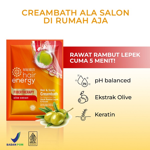- Rambutmu lepek karena berhijab seharian, atau berminyak bikin rambut nggak bervolume? Cobain deh Makarizo Hair Energy Fibertheraphy Creambath varian Olive Extract.