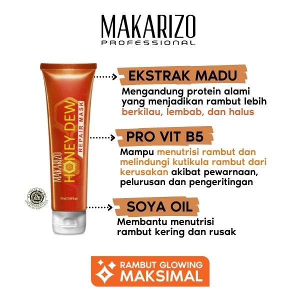 Honey Dew Repair Mask adalah masker perawatan rambut yang menutrisi sampai ke dalam dengan?royal jelly?yang berfungsi untuk: