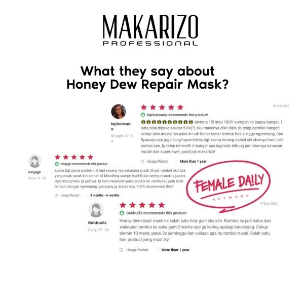 Satu tube Honey Dew Repair Mask dapat digunakan untuk 1-2x aplikasi pada kepala dengan rambut panjang sebahu dan tekstur normal (tergantung ketebalan, kondisi, dan tekstur rambut).
