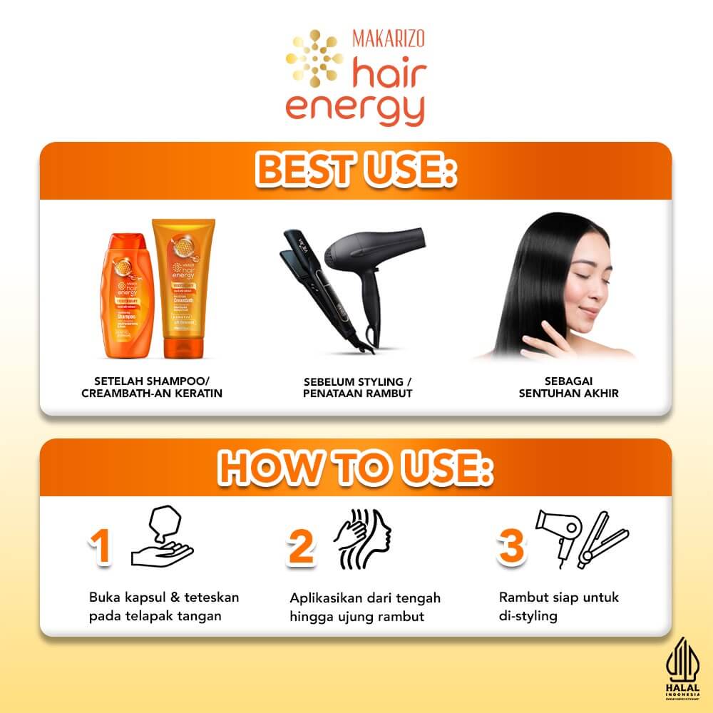 - Gunakan pada rambut setengah kering setelah keramas