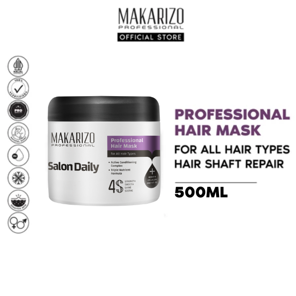 Masker Rambut / Hair Care / Hair Treatment / Treatment Rambut / Perawatan Rambut. Salon Daily Professional Hair Mask 500mL. 4S: Strength, Smooth, Shine, Soothe. Masker Rambut untuk untuk Semua Jenis Rambut, yang diperkaya dengan Hydrolyzed Collagen, memberikan kekuatan dan kelembaban pada rambut. Nutrisi Royal Jelly mampu meningkatkan kilau sekaligus memperkuat rambut yang lebih sehat.