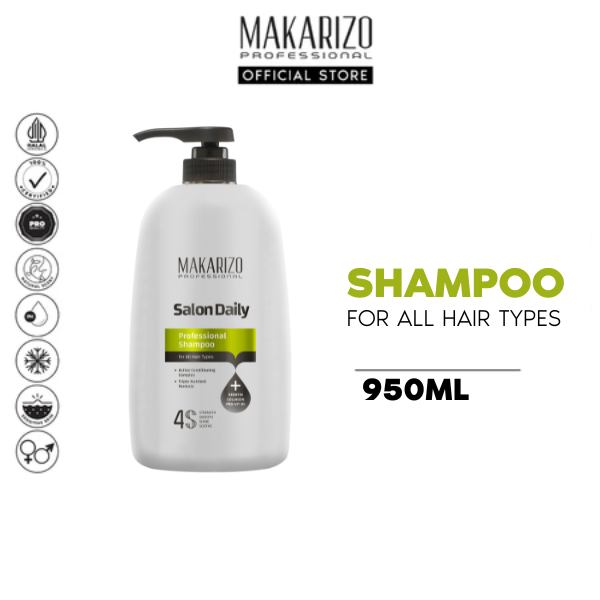 Sampo / Shampoo / Gentle Shampoo / Hair Care / Hair Treatment / Perawatan Rambut. Makarizo Professional Salon Daily Professional Shampoo 950mL. 4S: Strength, Smooth, Shine, Soothe. Shampo yang dirancang untuk Semua Jenis Rambut, diperkaya dengan Panthenyl Ethyl Ether dan Phytantriol, menciptakan efek perawatan aktif bersama dengan Formula Tiga Nutrisi, mampu membuat rambut lebih kuat, lebih lembut, lebih berkilau, dan memberikan sensasi yang menenangkan.
