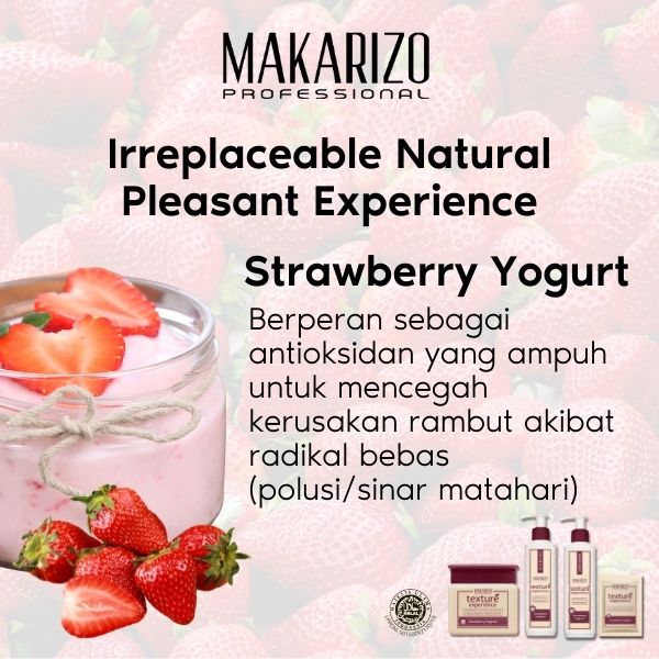 Kombinasi strawberry?alami dan ekstrak?yoghurt?dengan kandungan vitamin C dan asam amino untuk menutrisi, menjaga kelembapan dan melindungi rambut. Strawberry Yoghurt juga dikenal dapat melembutkan & membuat rambut berkilau bahkan pada rambut yang paling kering & rusak.